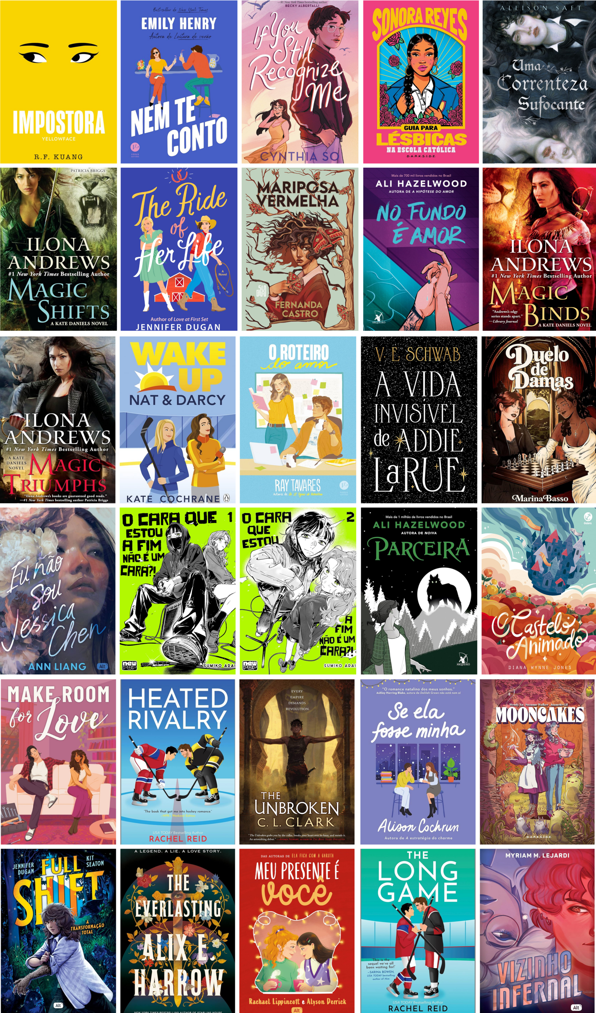 Foram 30 livros, exatamente a minha meta do Goodreads, e uma maioria esmagadora de romances. Muita fantasia também, porque esse continua sendo meu gênero literário favorito. E vários livros sáficos, meus queridinhos.